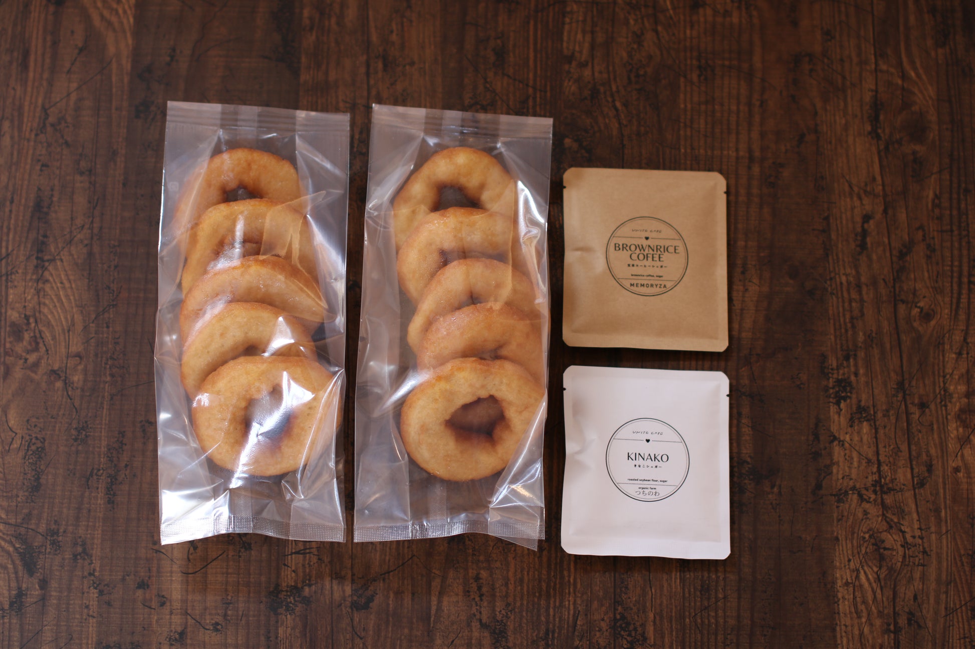 プレーンドーナツ10個 + 玄米コーヒーシュガー1袋 + きな粉シュガー1袋